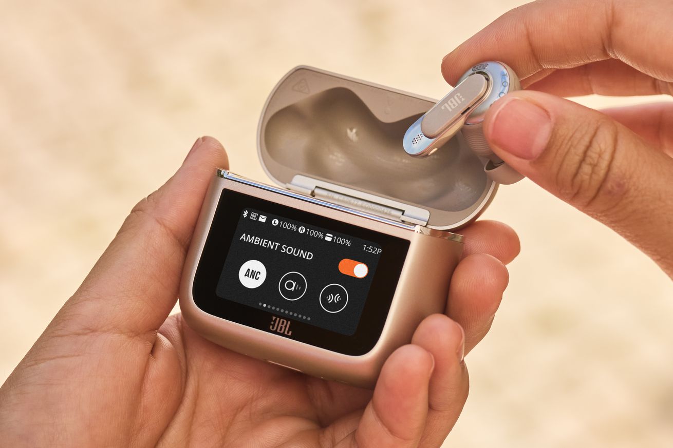 The touchscreen on the JBL Tour Pro 3’s charging case is now 30 percent larger. | Image: JBL
