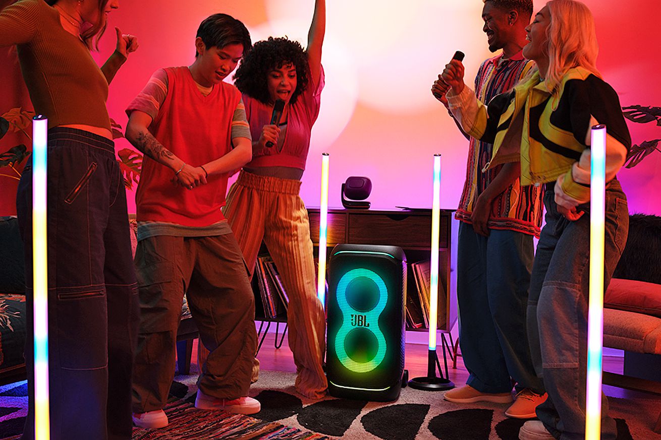 JBL has announced two new accessories for its PartyBox line of LED-enhanced Bluetooth speakers: the PartyLight Stick, which looks like a glowing animated lightsaber, and the PartyLight Beam, which can cast a light show on walls or ceilings.