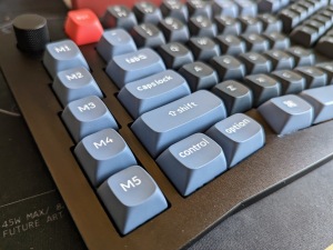 My review unit came with brown switches, which some people like, but I find to fall into the uncanny valley between tactile and linear. They just aren’t all that tactile, yet also not quite linear. I prefer linear switches, but if I use a tactile switch, I want to feel that tactile bump as I press down. I had a set of pre-lubed three-pin Gateron CAP Golden Brown switches lying around here (as one does), which are a bit more tactile and made me enjoy the keyboard quite a bit more. They also have a slightly lower pitch than the standard Geteron brown switches.