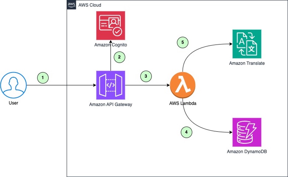 For this blog post, we will be using Amazon API Gateway as a rest API for translation that integrates with AWS Lambda to perform backend logic. An Amazon Cognito user pool is used to control who can access your translate rest API. You can also use other mechanisms to control authentication and authorization to API Gateway based on your use-case.
