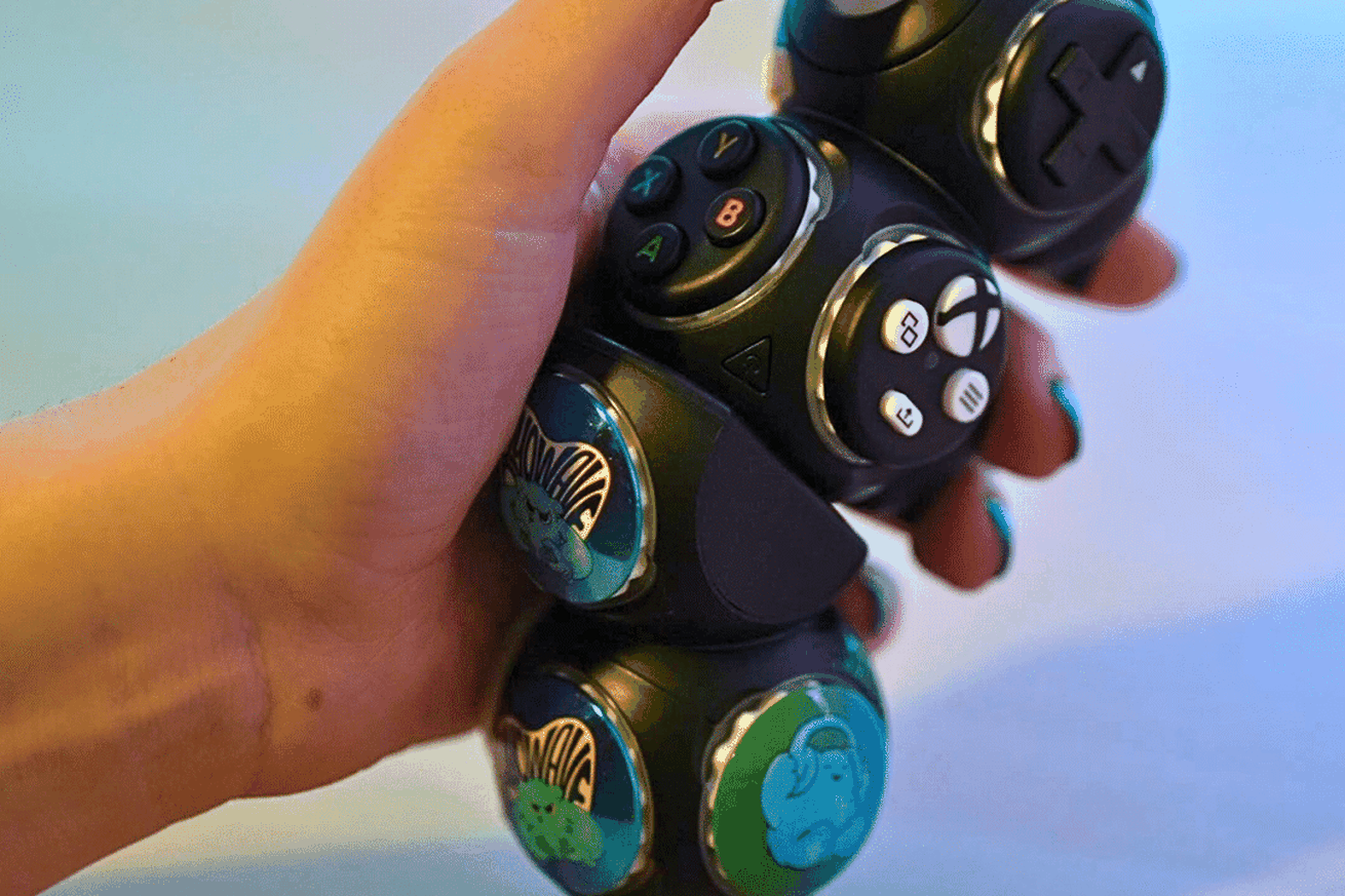 Created by peripheral company ByoWave as part of the Designed for Xbox program, the wireless controller consists of small cubes with interchangeable faceplates that include controller buttons, a directional pad, and analog sticks.