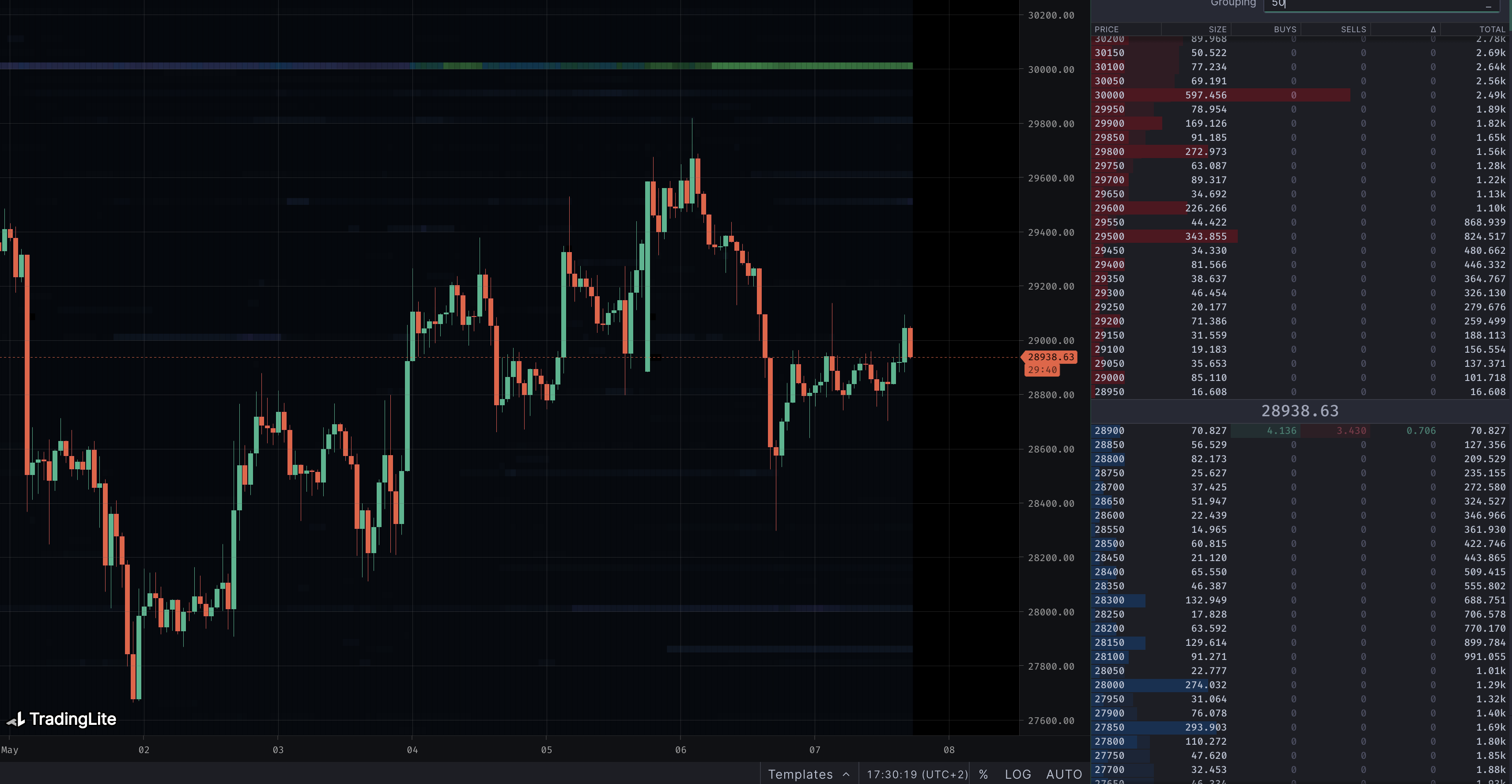 You can think about these levels as floors and ceilings below and above price as markets won’t be able to advance higher or lower by $50 as long as someone is going to either buy into those 16.608 BTC at the offer or sell into those 70.827 BTC at the bid.