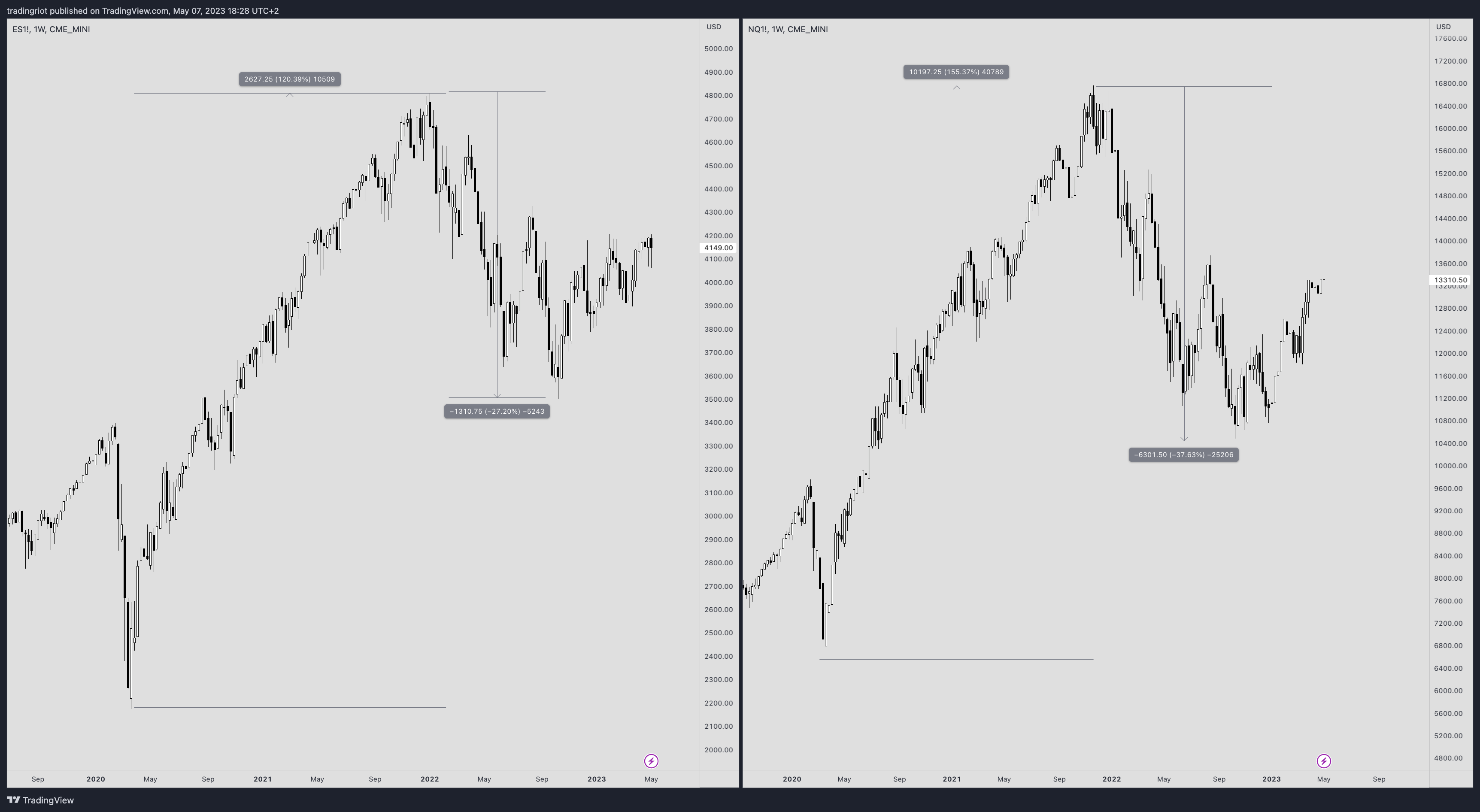 As you can see, after March 2020 covid crash, ES rallied 120% followed by a 27% correction.
