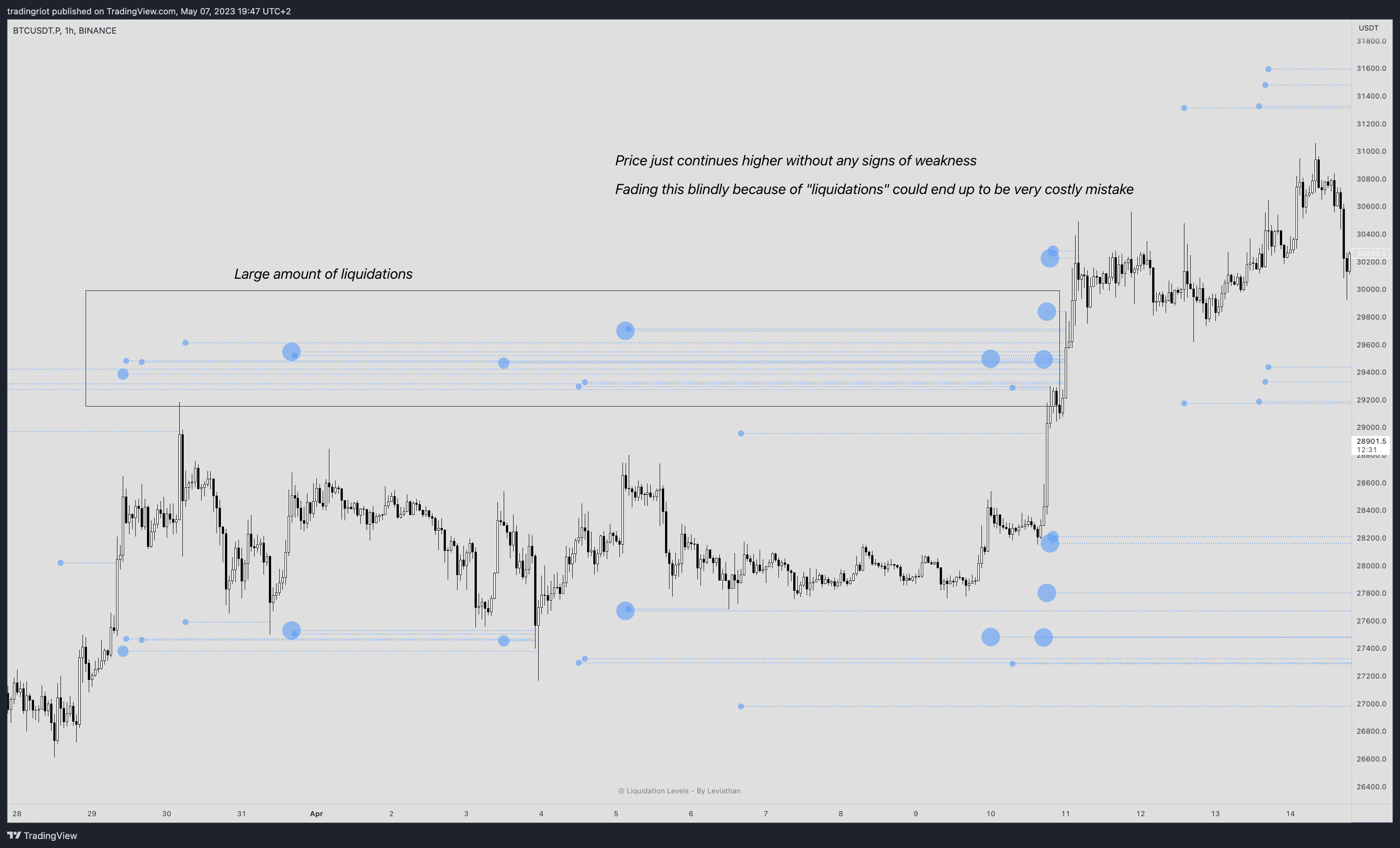 In my opinion, it is much smarter to watch how markets behave at these levels in regard to changes in open interest, order flow, and relative volume rather than trying to pre-emptively fade every single move because someone will get liquidated there.