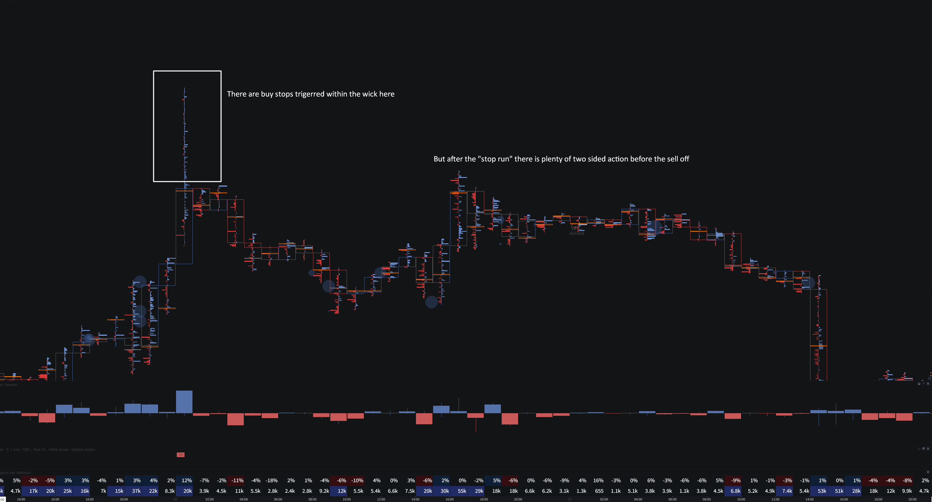 Although without a doubt some stops got triggered at the high, what came next was this two-sided auction between buyers and sellers that got resolved to the downside during the macroeconomic release.