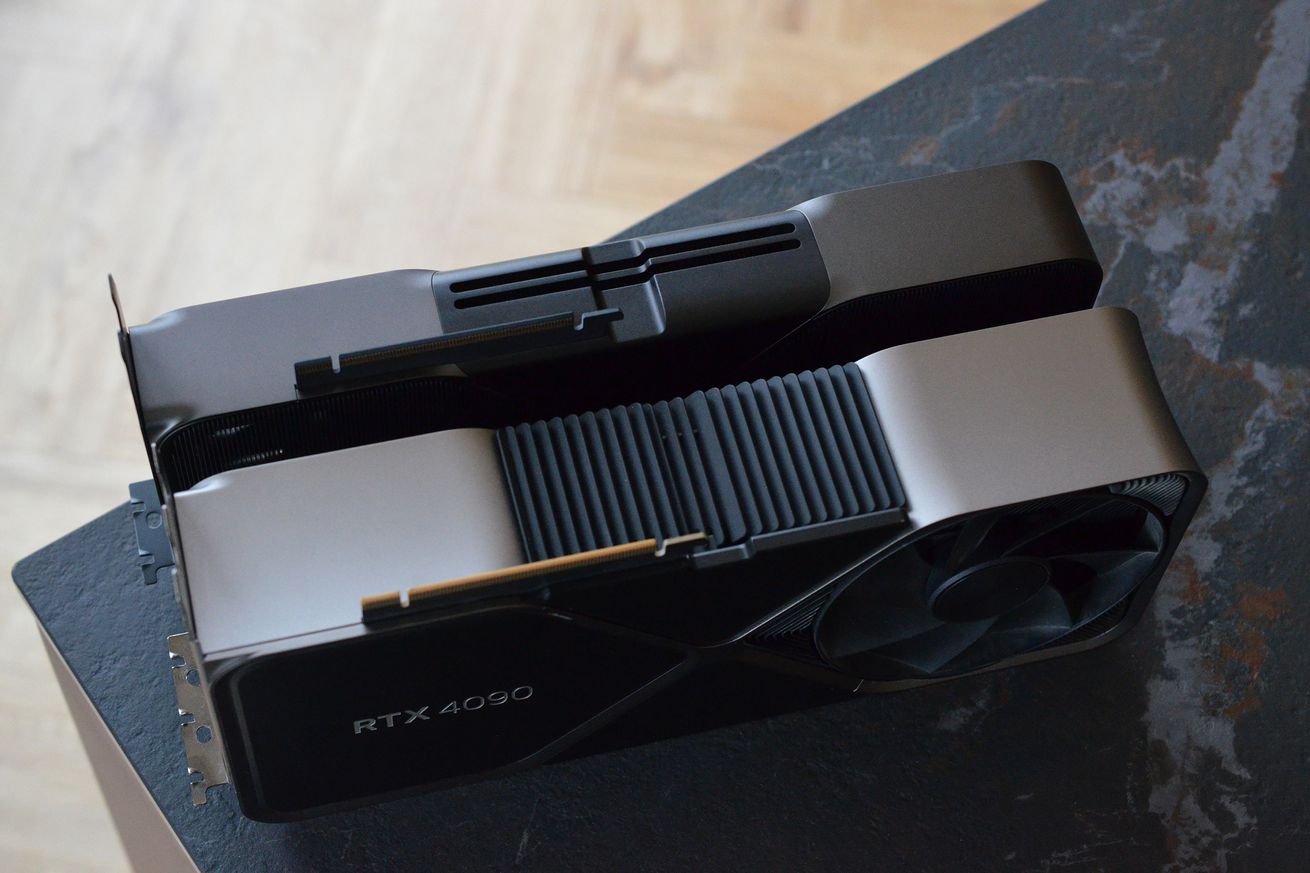 The RTX 4090 is a lot thicker than the RTX 5090. | Photo by Tom Warren / The Verge