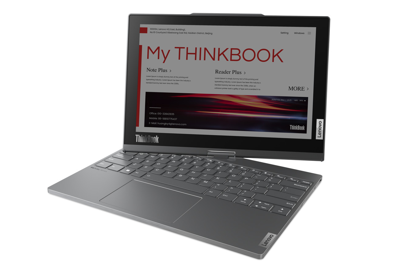 But why should I have to choose between a great screen and one I use all day? Why not both? That’s the idea behind the ThinkBook Plus Twist, a new laptop that Lenovo’s announcing at CES 2023.