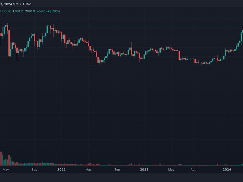 Binance’s native BNB token is approaching an all-time high of $705 after surging by more than 10% from Sunday’s low of $597.