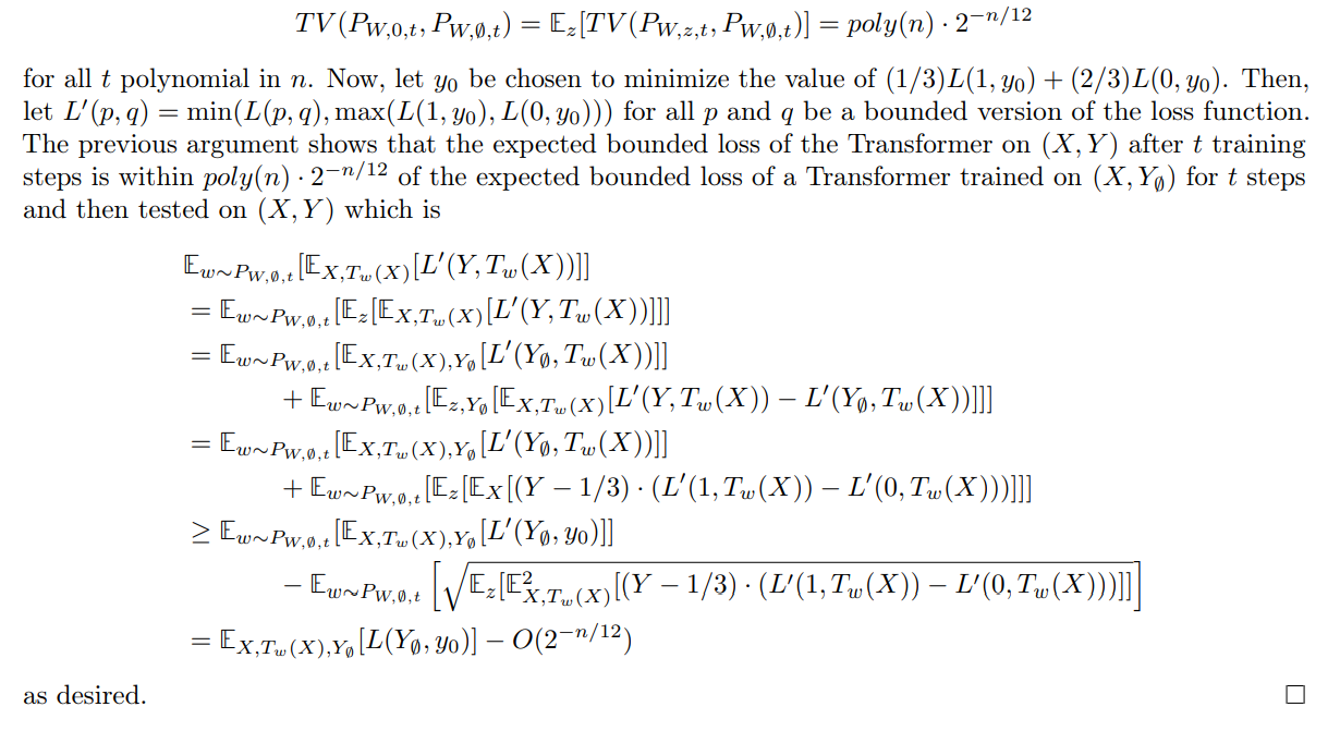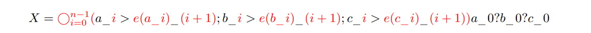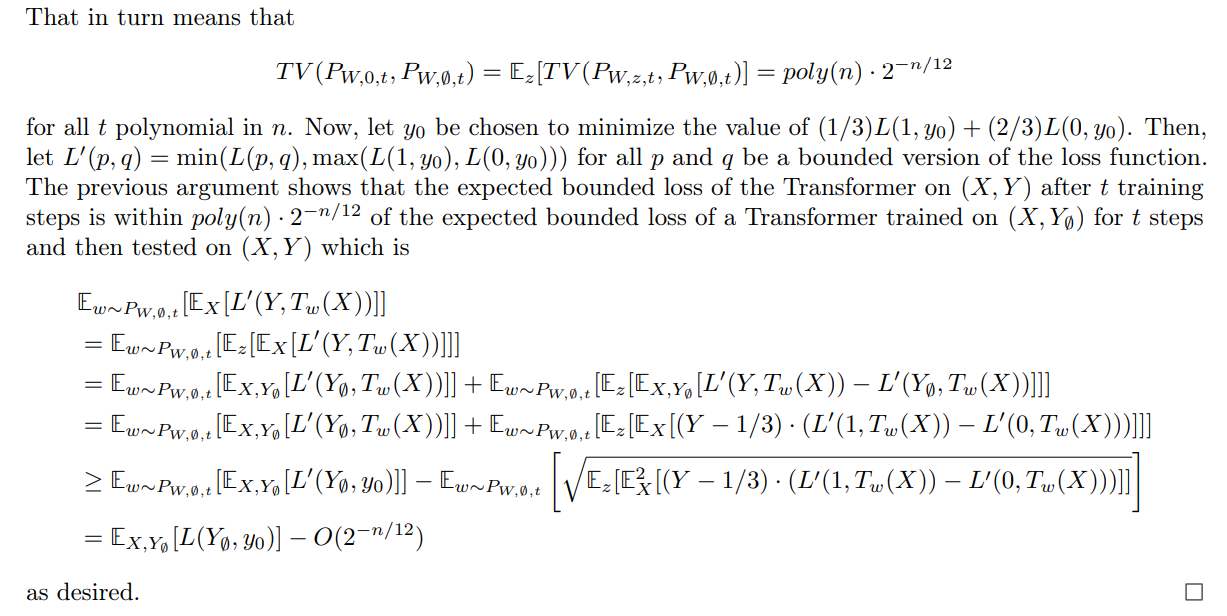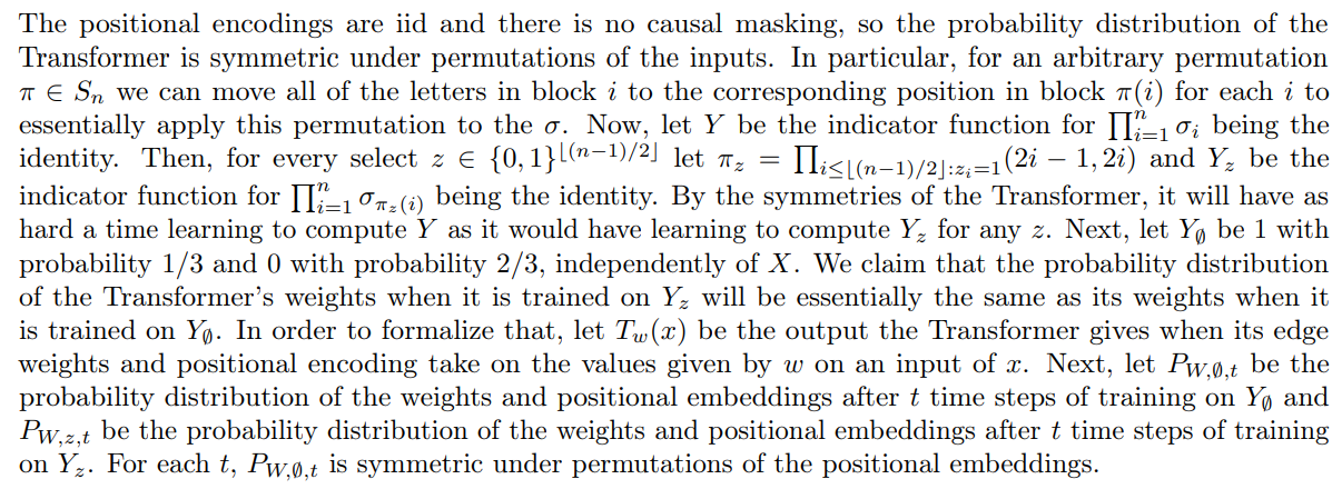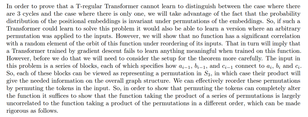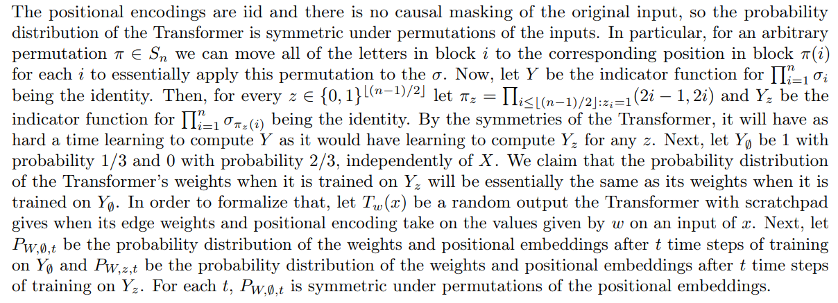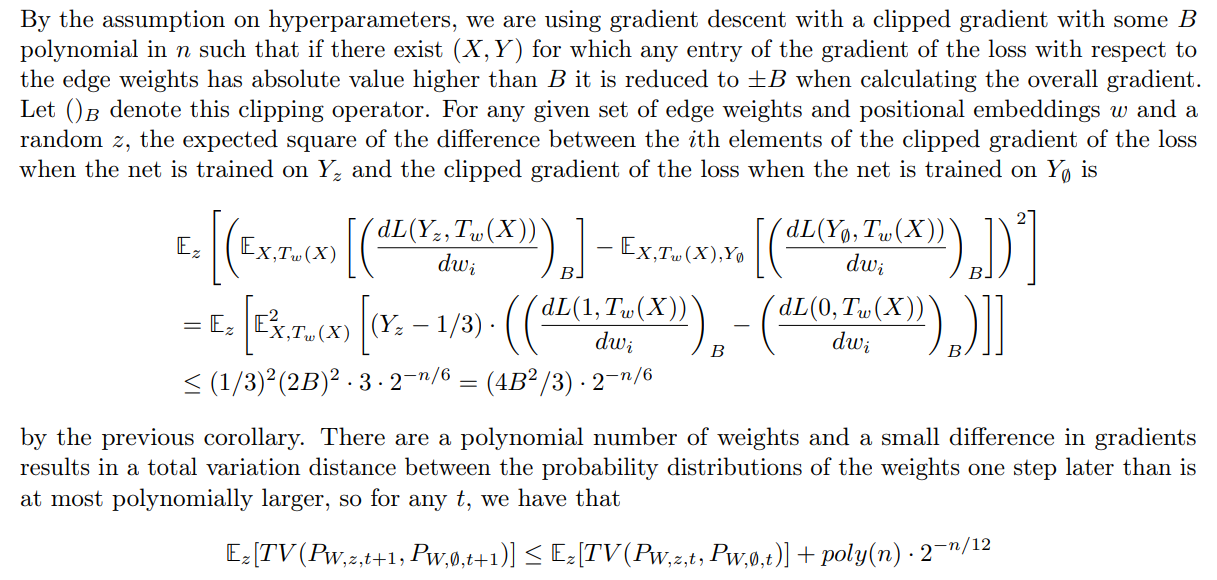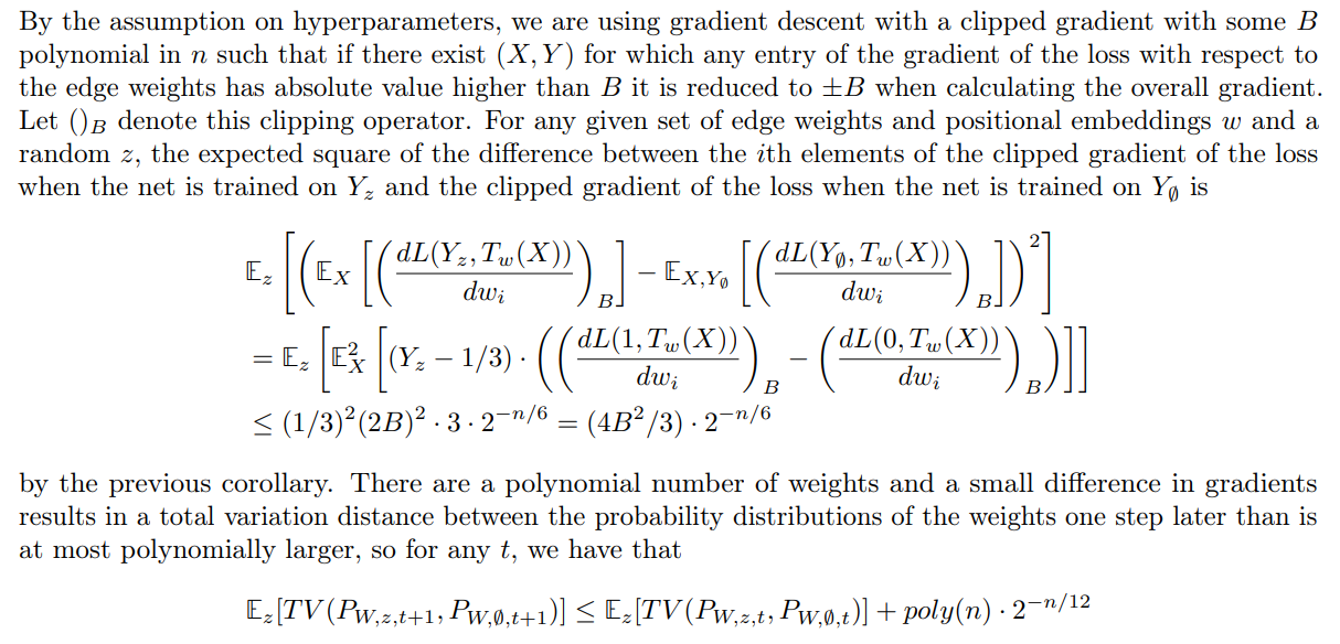 where e(v) represents the vertex that v’s edge points to, all of the instances of i or i + 1 should have the appropriate value substituted in and the symbols in black should be used exactly as stated. See Figure 2 for an example. Finally, let Y report whether a0, b0, c_0 are in the same cycle or not. Now, consider training a T-regular neural network with a scratchpad of polynomial length on (X, Y ) generated in this manner. For any given (X, Y ), we will regard the net’s loss on (X, Y ) as the expectation over all possible scratchpads that it might generate on X of the loss of its eventual output. If we train it on (X, Y ) using population[14] gradient descent with polynomial hyperparameters[15] and a differentiable loss function then the network fails to weakly learn to compute Y.
