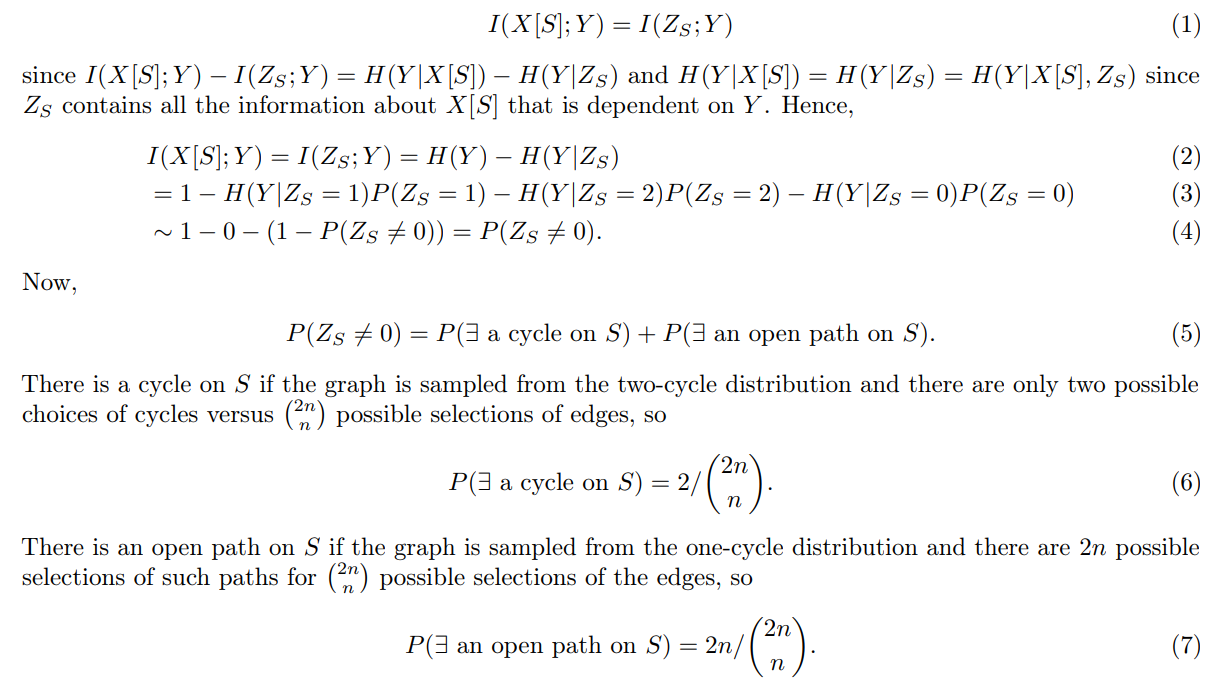 Let S be such that |S| = n. Let ZS be the ternary random variable that records whether there is a cycle or an open path on S. Then,