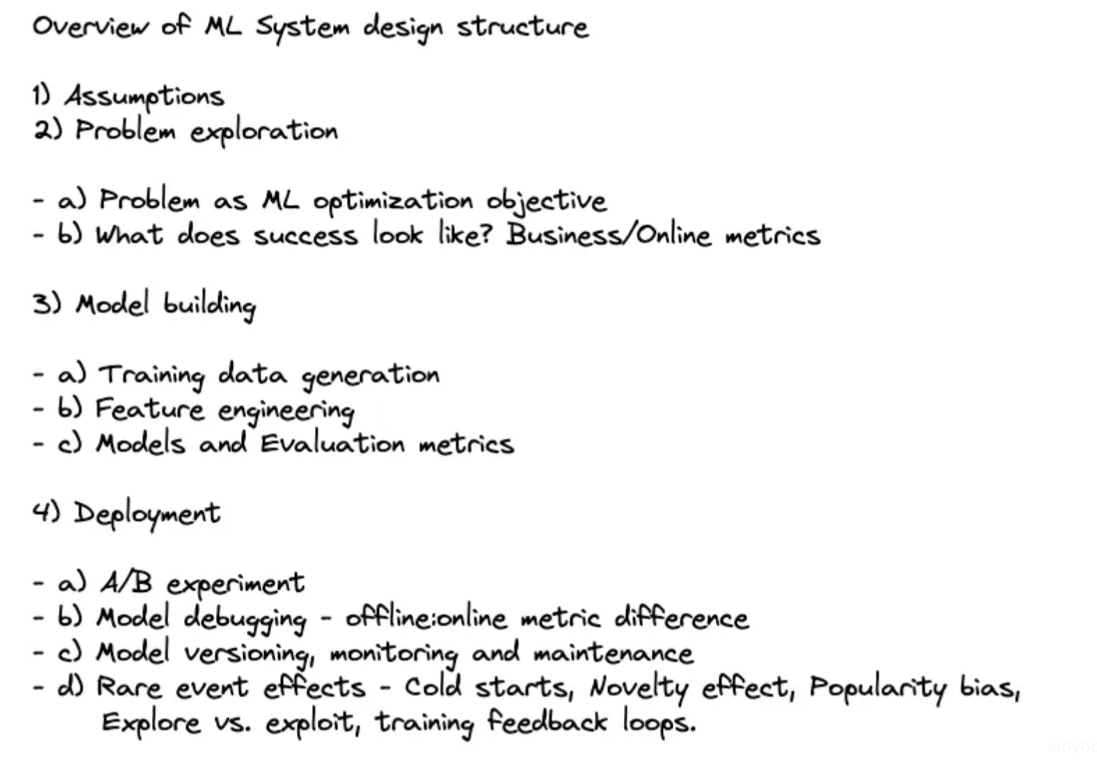 Say you have a question like “Design a Youtube recommendation system” -> There’s a typical structure that you could follow: