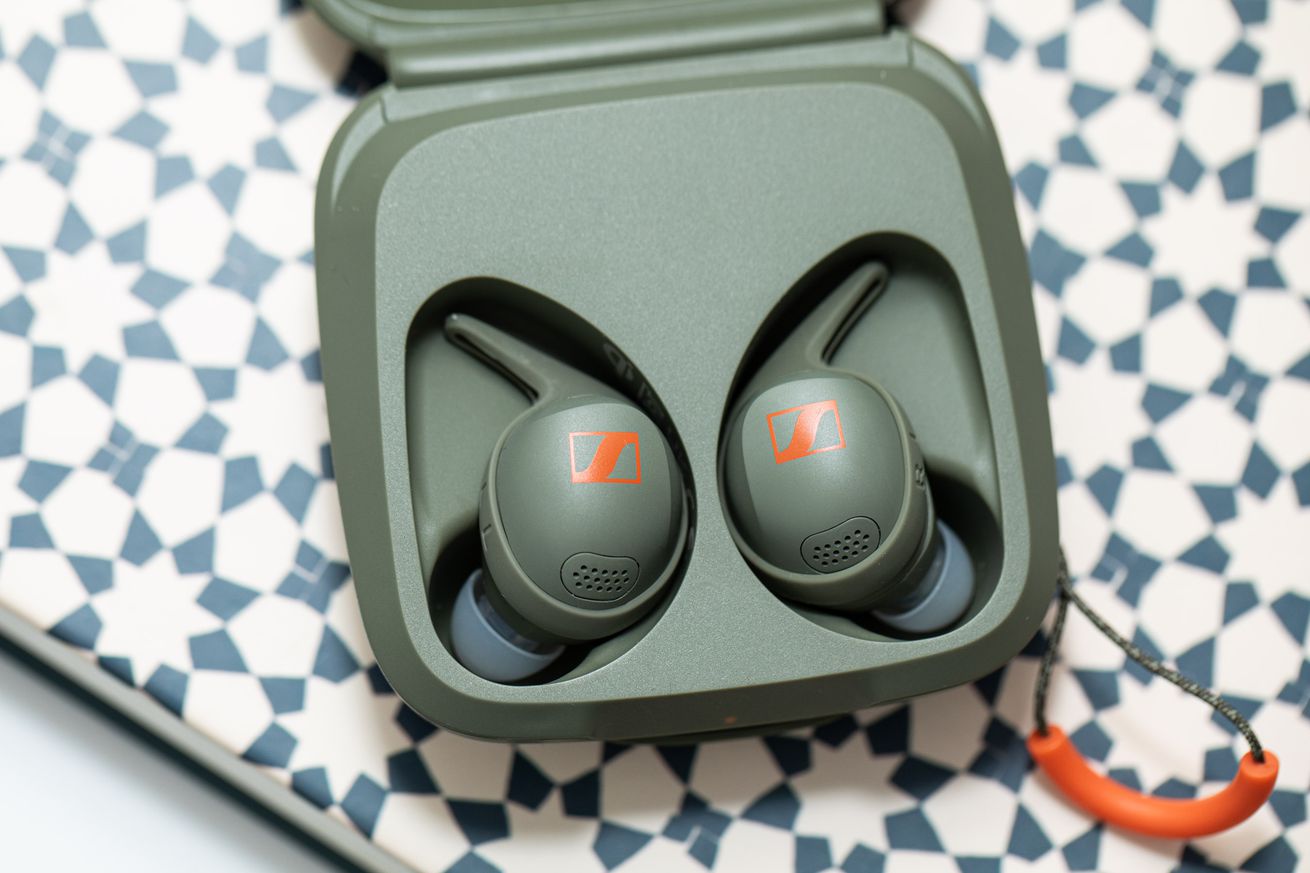 The Momentum Sport Earbuds come in a few different color options, but the only vibrant hue is olive. | Photo by Amelia Holowaty Krales / The Verge