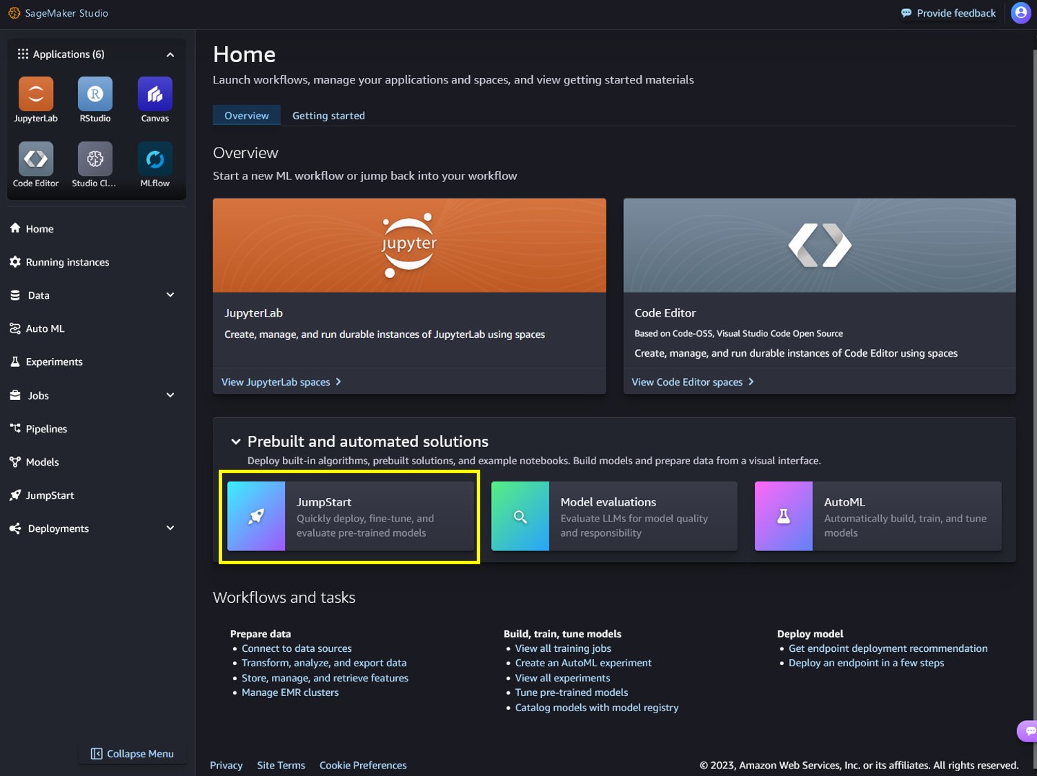 You can access the FMs through SageMaker JumpStart in the SageMaker Studio UI and the SageMaker Python SDK. In this section, we go over how to discover the models in SageMaker Studio.