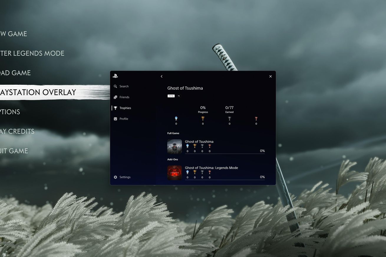 Ghost of Tsushima Director’s Cut debuts on PC today, and it’s the first game to feature Sony’s new PlayStation PC overlay and shared Trophies system. I’ve had a chance to get a first look at this new overlay, and my initial impression is that it’s really unobtrusive, clean, and simple.