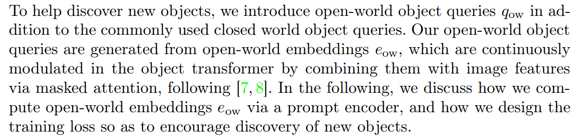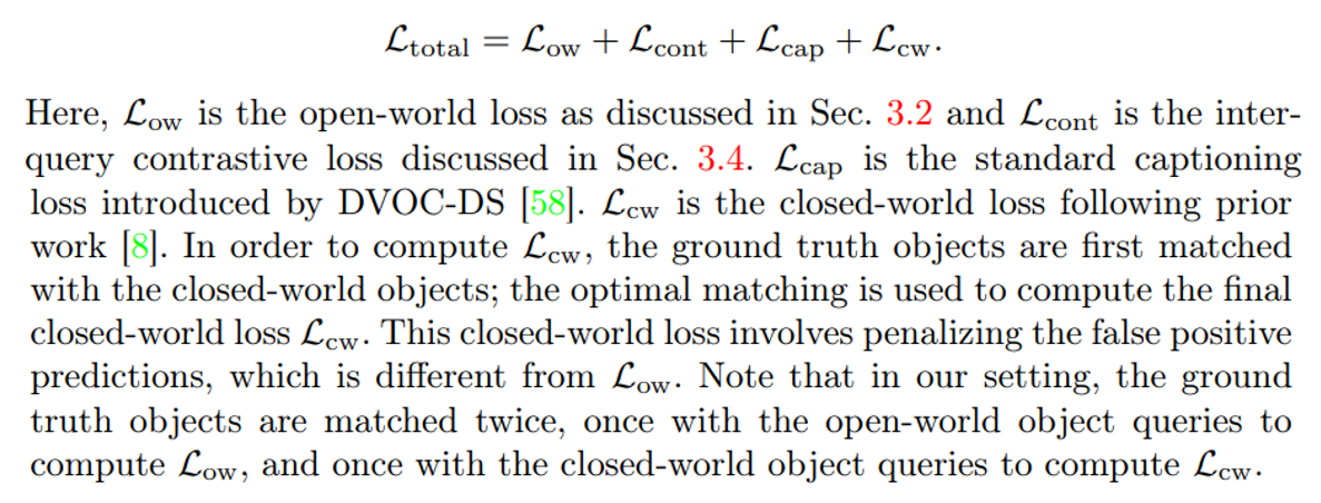 We introduce an inter-query contrastive loss to ensure that the object queries are encouraged to differ from each other. We provide details in Sec. 3.4. For closed world objects, this loss helps in removing highly overlapping false positives. For open-world objects, it helps in the discovery of new objects.