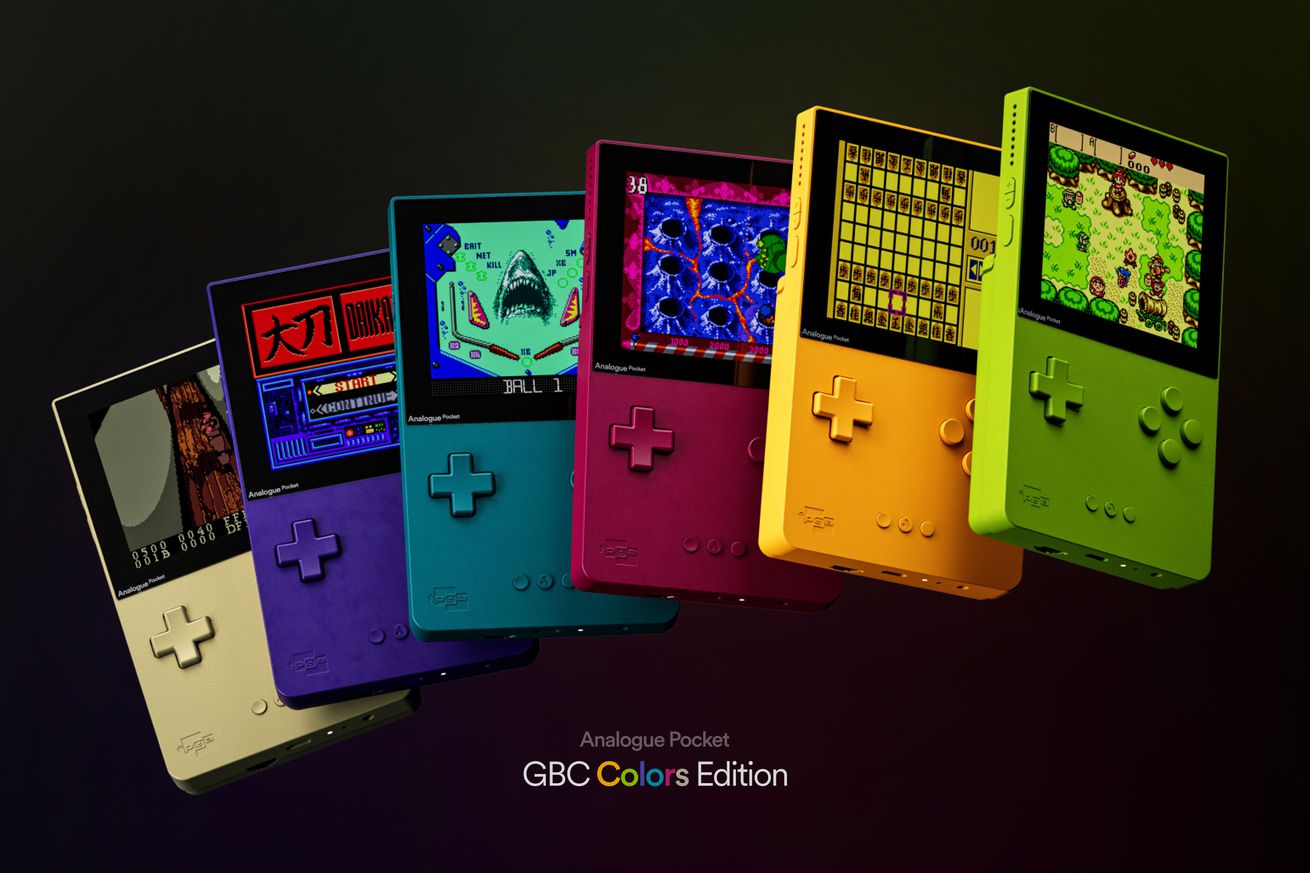 Analogue is back with another collection of new colorways for its Pocket handheld, now drawing inspiration from Nintendo’s first color screen handheld. The Pocket GBC Colors Edition introduces six new colors — teal, berry, kiwi, grape, and dandelion — which were the five launch colors of the Game Boy Color in 1988, plus a gold version based on a special edition of the GBC created for Pokémon Gold.