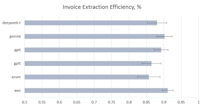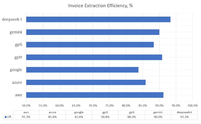 This issue significantly impacted Azure’s efficiency on this invoice, which was notably lower (33.3%) compared to the other models.