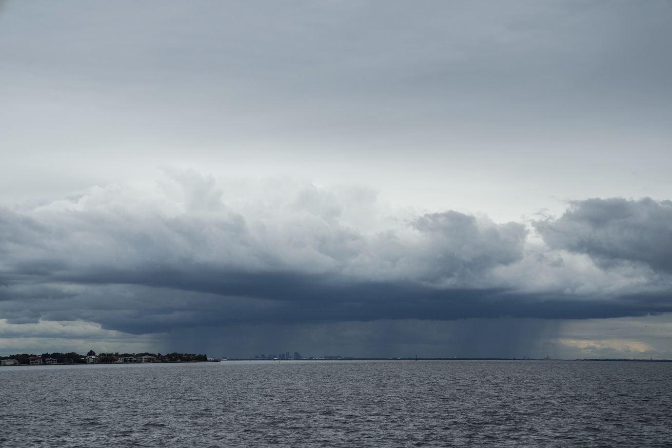 A thunderstorm can be seen moving over Tampa in the distance from St. Petersburg, Florida ahead of Hurricane Milton’s expected landfall in the middle of this week on October 8, 2024. | Photo: Getty Images