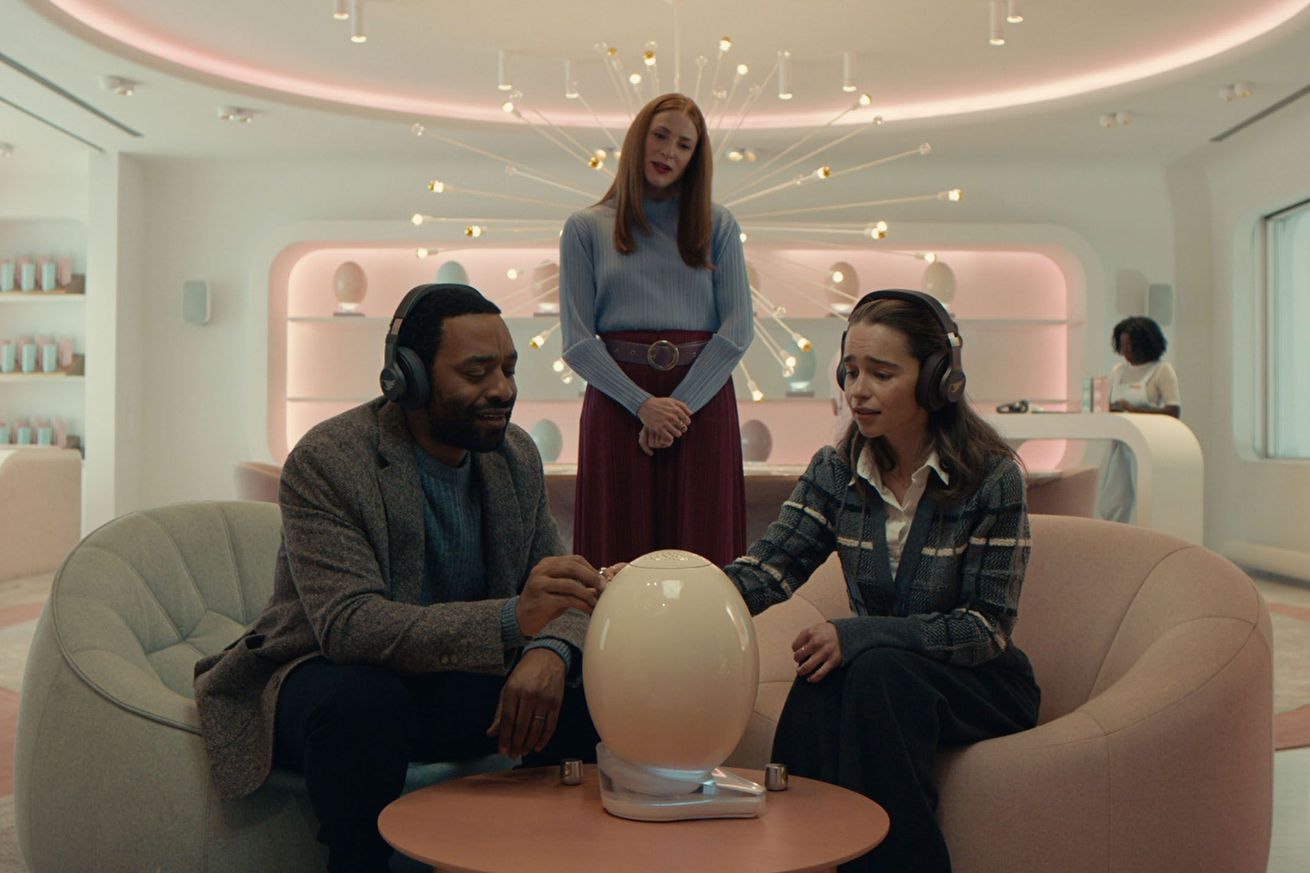 Chiwetel Ejiofor. Rosalie Craig, and Emilia Clarke in The Pod Generation. | Image: MK2
