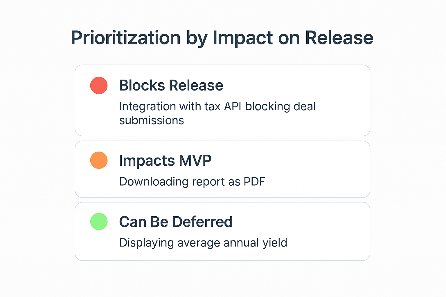 When juggling dozens of integrations and features, it’s tempting to argue about what’s “most important.” But theoretical importance doesn’t equal criticality. Some things might seem big or urgent — but they are not the ones holding up the release.