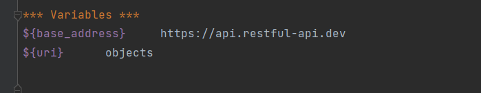 Get Request is a built-in function in Robot Framework that gets at least two arguments. This is why I put the URI in a separate variable. The code above calls the API and gets the response, so we must hold the response in a variable like:
