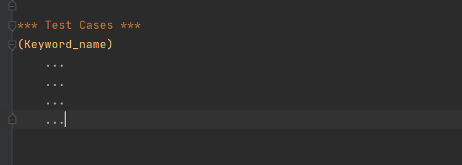 To write test cases in Robot Framework, you should create a file with .robot extension, then you can write your scenario in the file to be run.