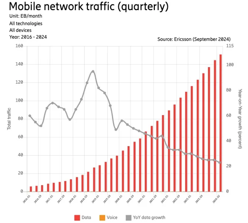 Recent market predictions indicate mobile data traffic will increase dramatically from 109 million terabytes per month in 2023 to 603 million terabytes by 2030. The massive increase in traffic shows that networks cannot rely on past management systems to function effectively.