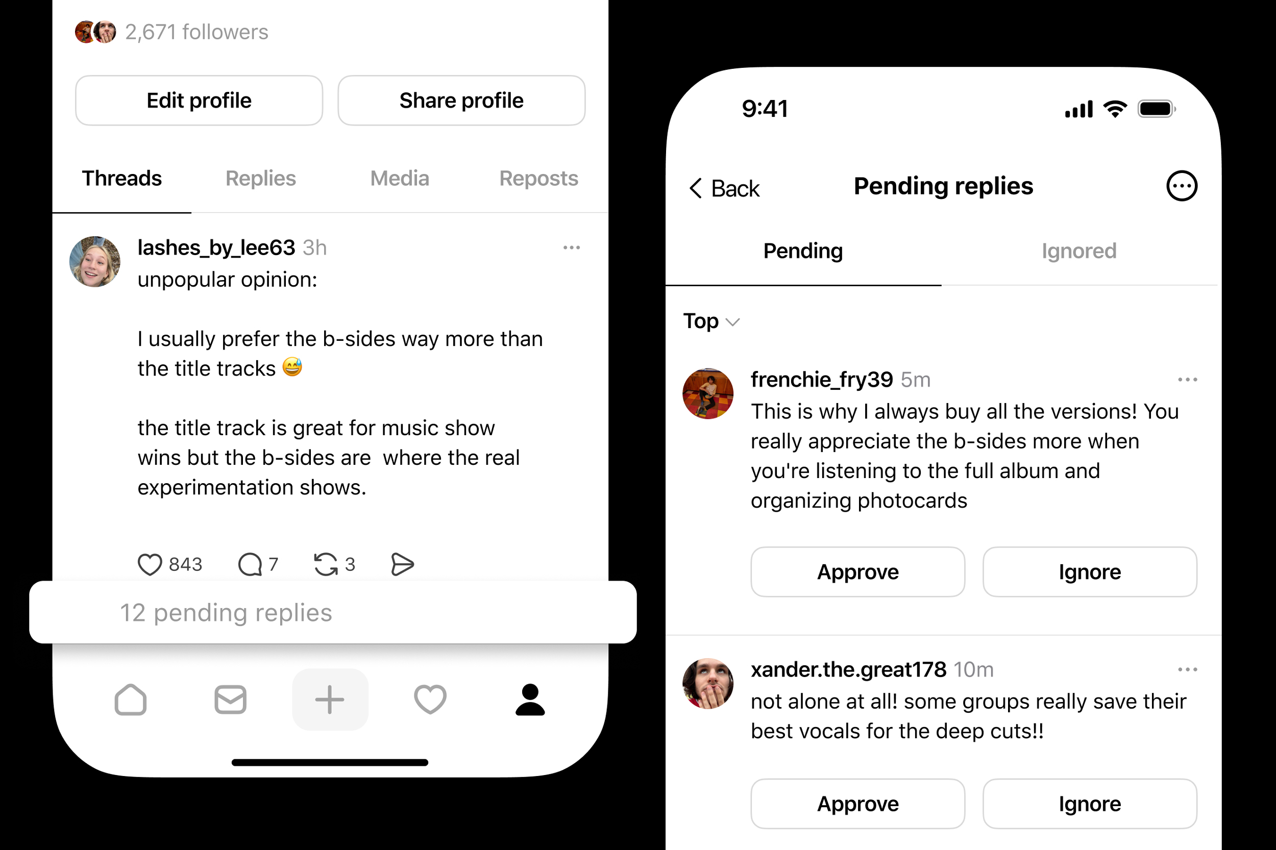 Reply approvals will require more legwork and attention, but it allows Threads users to monitor and individually select which replies will appear publicly on their posts before anyone else sees them. Users will be presented with a list of pending replies and can make them public using approve and ignore buttons for each one. To save time, if all the replies look okay, or if they all appear to be spam from bots, the entire pending list can be approved or ignored in one fell swoop.