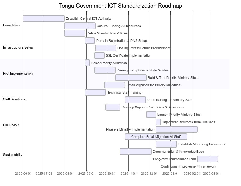 By implementing basic standards for domain structure, security, and email communications, the Tongan government can significantly improve service delivery and prepare for more advanced digital transformation. These changes don’t require massive budgets or cutting edge technology, just proper planning, leadership, and implementation of widely used standards.