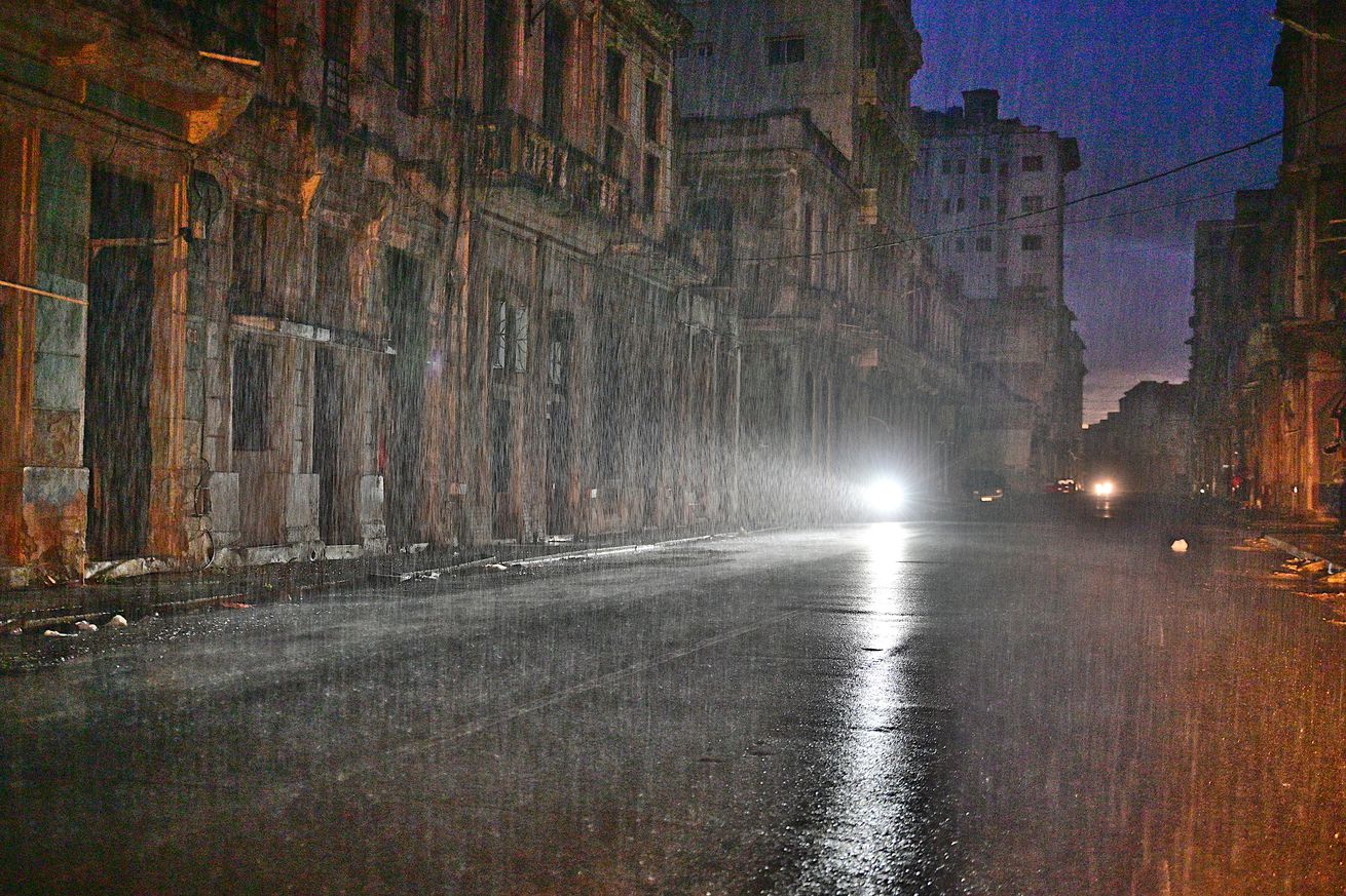 A motorcycle lights a street under pouring rain during a nationwide blackout caused by a grid failure in Havana, on October 19, 2024. | Photo: Getty Images