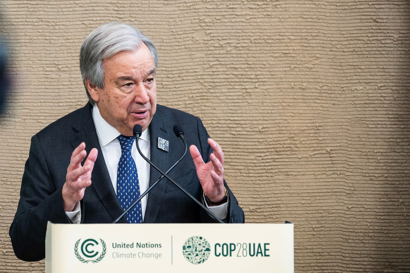 Antonio Guterres, secretary-general of the United Nations, speaks during a press conference at the UN Climate Change Conference COP28. | Photo: Getty Images