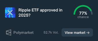 This latest move comes as expectations rise for regulatory approval of a spot XRP ETF. Traders on Polymarket are currently weighing a 77% chance that a spot XRP ETF will receive approval this year. However, the perceived odds of approval before July 31 are lower, at 35%.