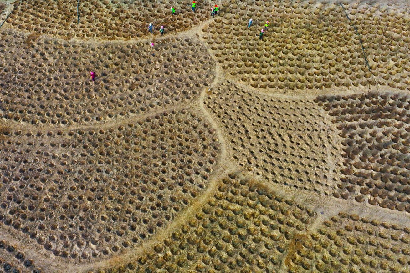 Workers plant trees at an ecological afforestation demonstration zone on April 11, 2023. | Photo: Getty Images