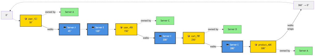 Let me explain this with a concrete example, because consistent hashing is one of those concepts that seems magical until you see it in action.