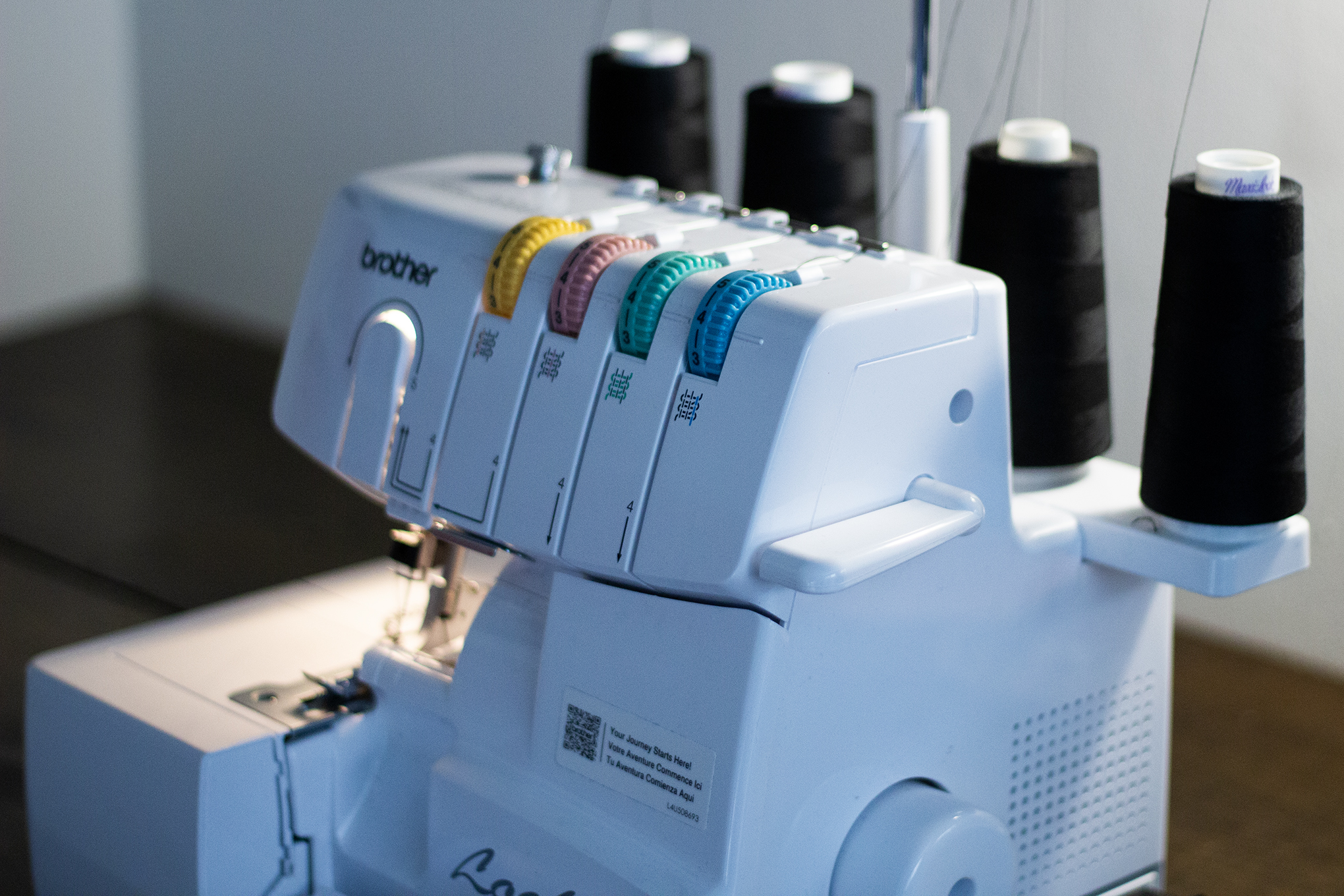 In choosing a serger, I wanted one that was easy to thread, had an adjustable free arm for sewing cuffs and sleeves, and could sew multiple layers of fabric at a time. I watched a bunch of YouTube reviews of sergers and found this one to be pretty affordable — and it checked my boxes. It also got better reviews than its cheaper sibling, the DX. I was intimidated by it at first because four spools of thread is kind of scary. But it has clearly labeled and color-coded instructions for threading and comes with a manual, so I learned it and had it down in under half an hour.