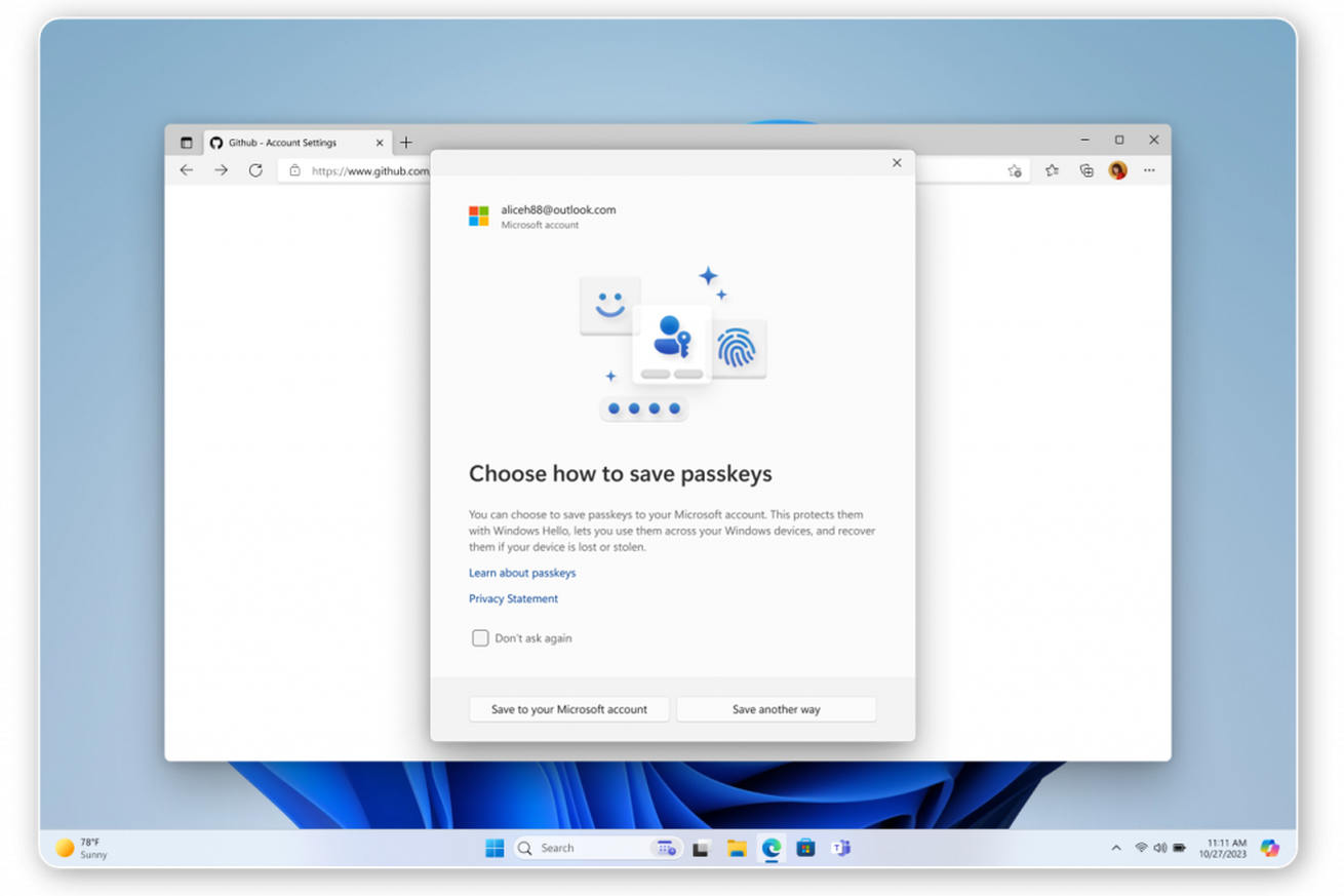 Microsoft is greatly improving its support of passkeys inside Windows 11 soon. A redesigned Windows Hello experience will allow you to select how you want to save your passkeys and even sync them to your Microsoft account or store them with 1Password, Bitwarden, or other passkey providers.