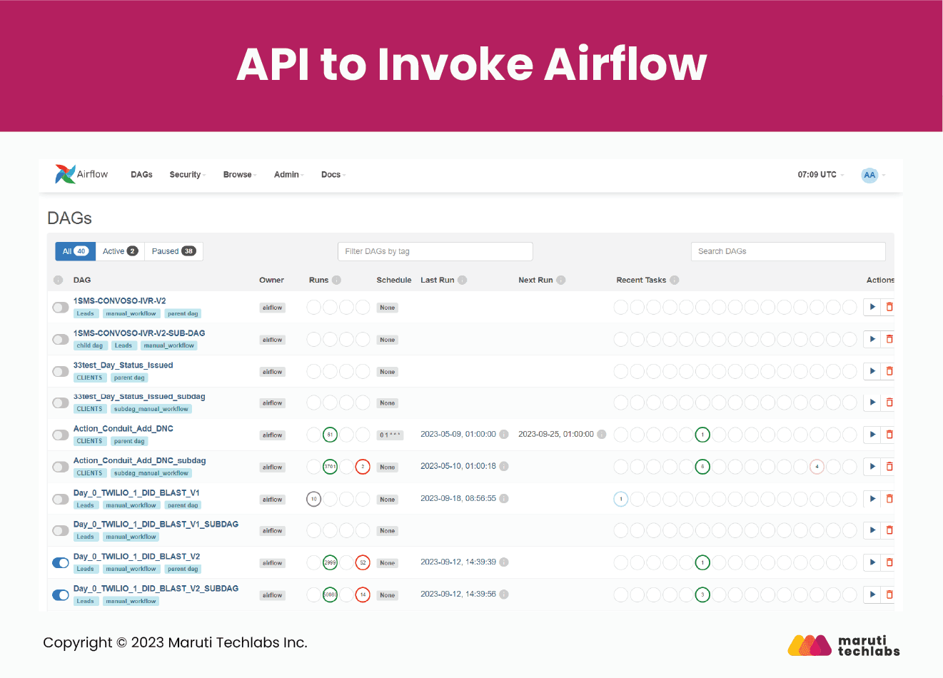 In addition to this, Airflow provides monitoring capabilities, parallel task execution, and time-based and event-based scheduling. This would solve most of the existing pain points within the existing CRM tool.
