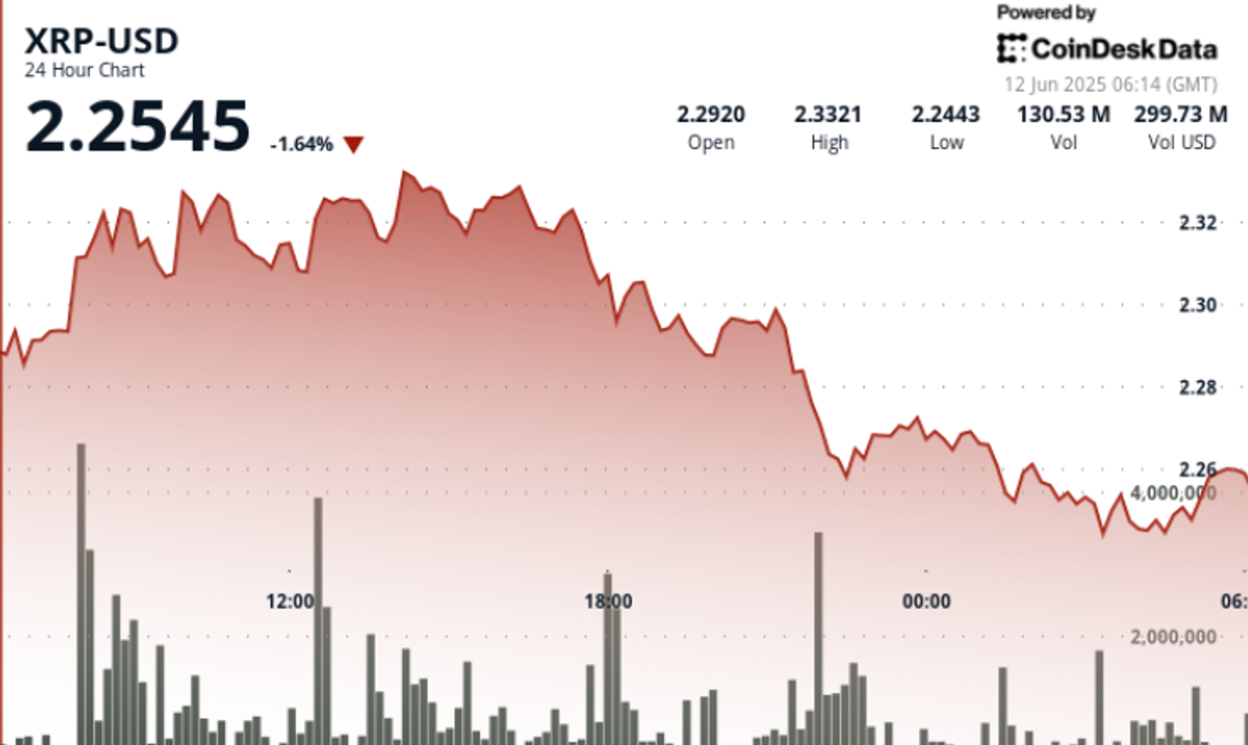 XRP XRP fell 3.7% over the past 24 hours, reversing from a daily high of $2.288 to close near $2.260 after three rejections at the $2.33 resistance level.