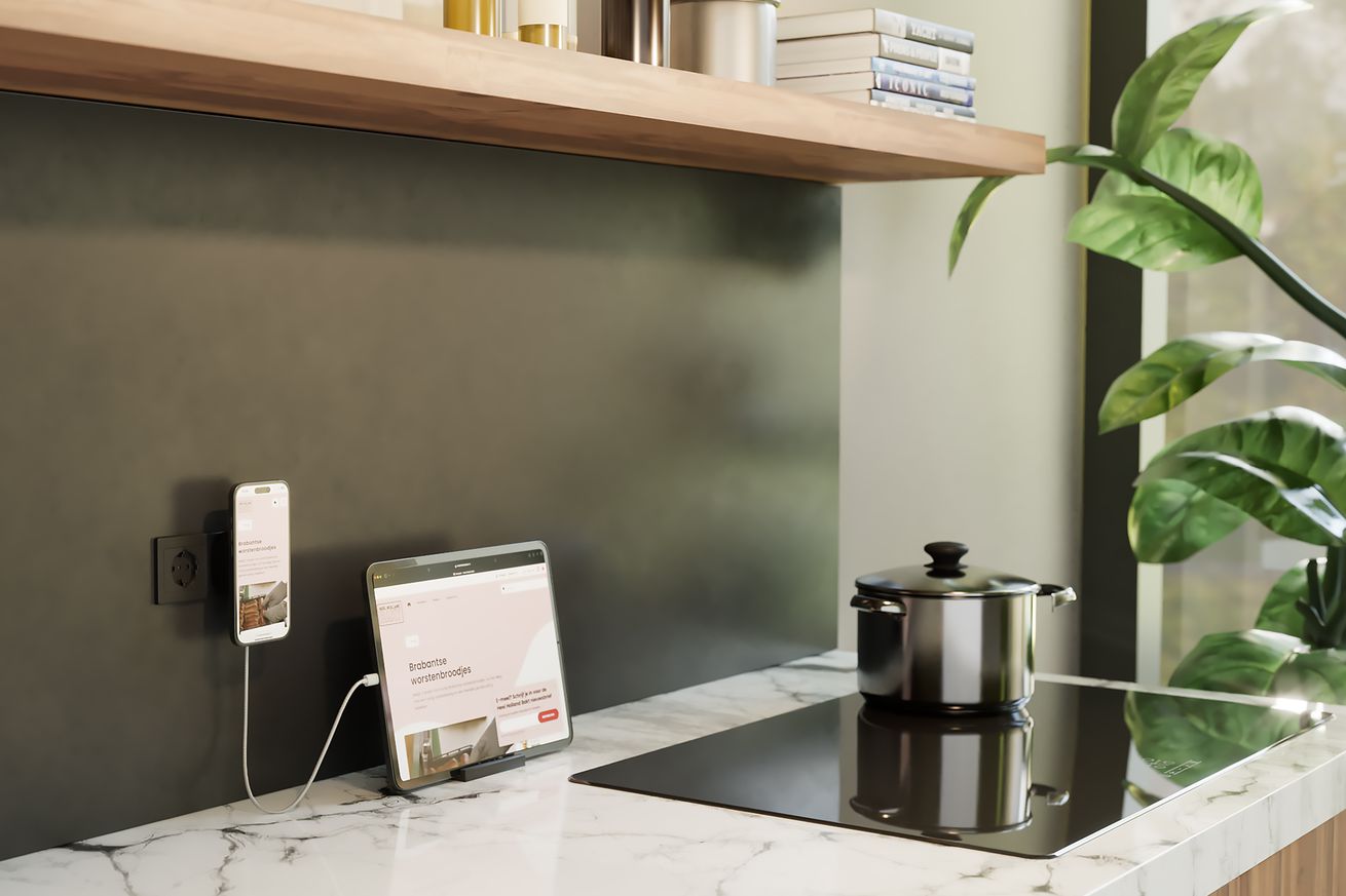Qi2 chargers are quite prevalent these days, and come in all kinds of shapes and sizes, so why not make one exclusively for Europeans with outlets above their kitchen countertops and a neat assortment of olive oils?