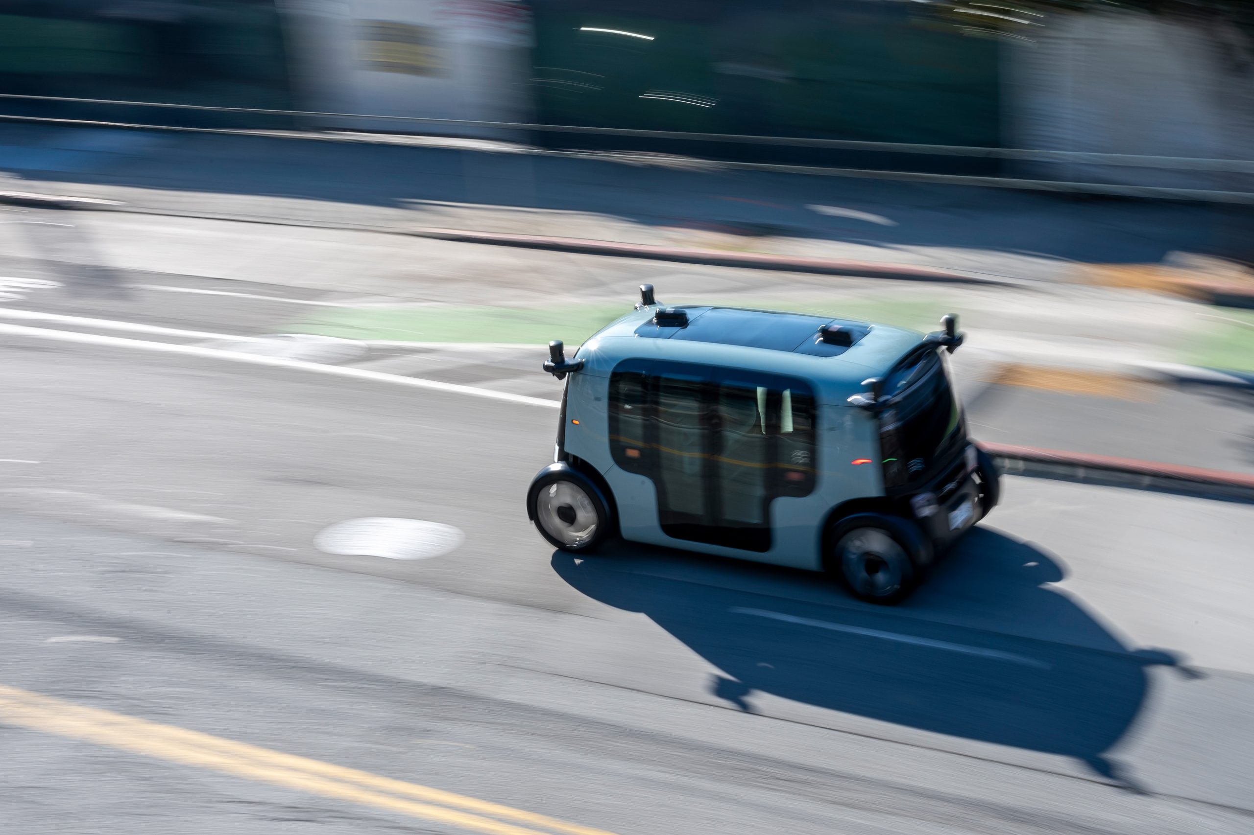 Iâm standing outside a nondescript corporate office park in Las Vegas next to a box-shaped vehicle with no proper front or back. It’s got a set of sliding doors, no steering wheel, and touchpad controls. Itâs bidirectional, meaning it can move in either direction without turning around. And to be completely frank, it looks more like an oversized toaster than an actual car.